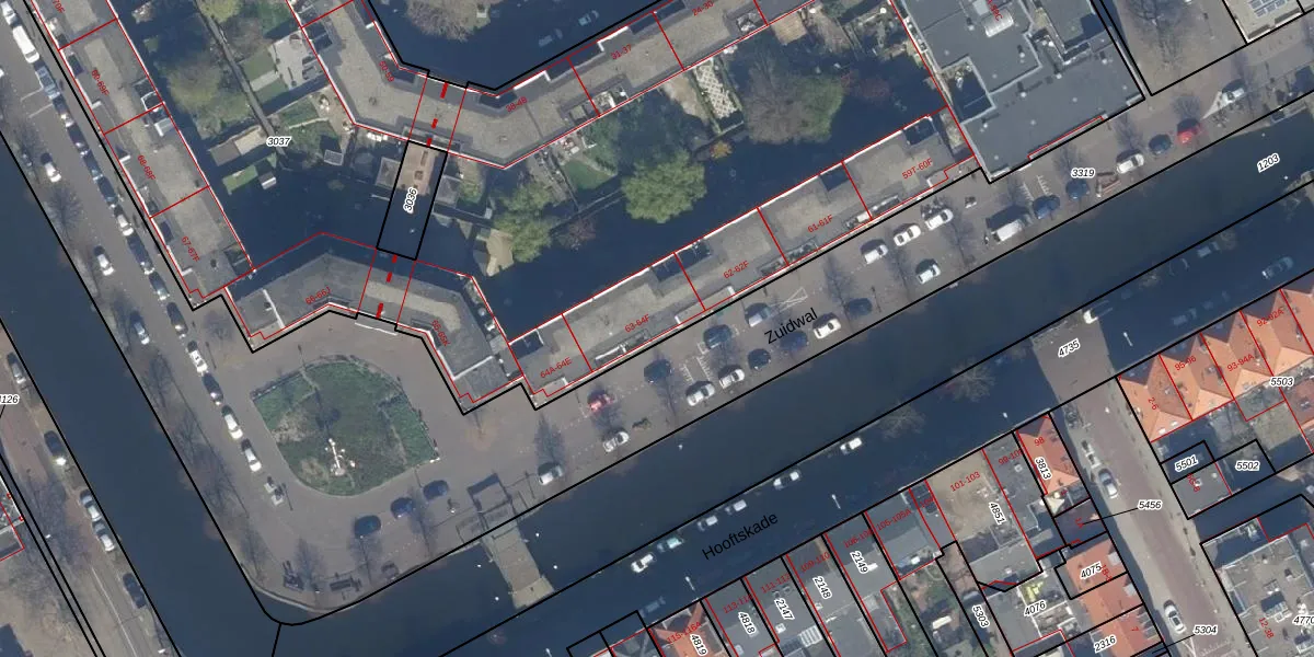 Zuidwal 63-E is gelegen op kadastraal perceel GVH07K3037. Deze kadastrale aanduiding is uniek en wordt gebruikt door het Kadaster om eigendomsrechten en andere zakelijke rechten vast te leggen. Het perceel maakt onderdeel uit van de kadastrale gemeente 's-Gravenhage.