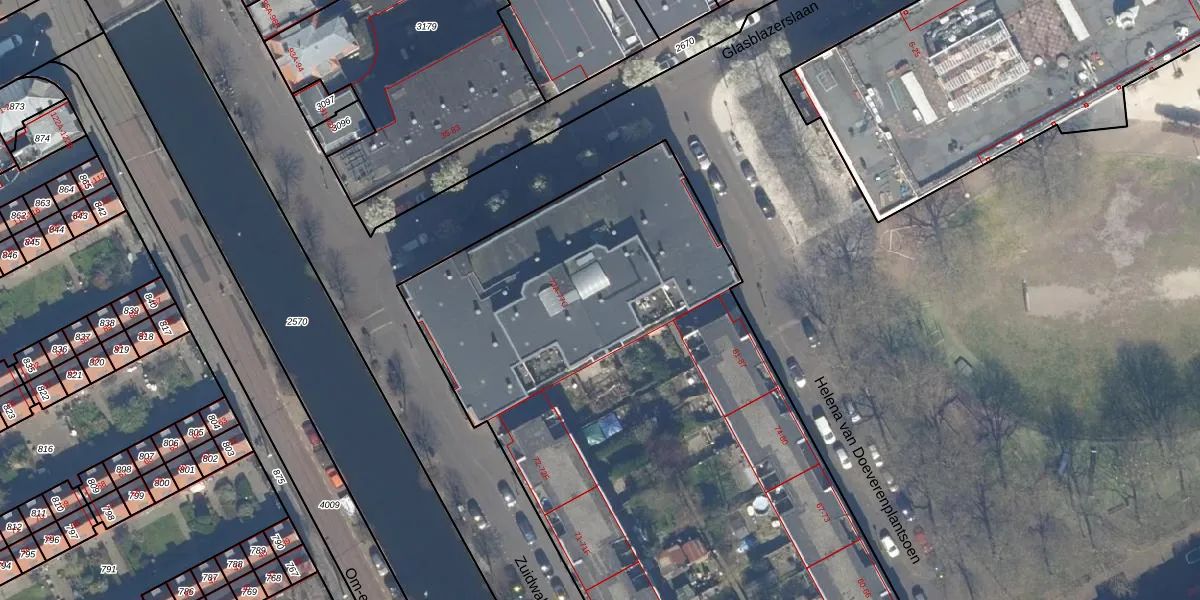 Het perceel waarop Zuidwal 77-B staat heeft een oppervlakte van 1,1 ha. Dit is een zeer groot perceel. De perceeloppervlakte wordt geregistreerd door het Kadaster. Gedetailleerde informatie over de maten van dit perceel kunt u vinden in het rapport Kadastrale kaart met maatvoering van Zuidwal 77-B.