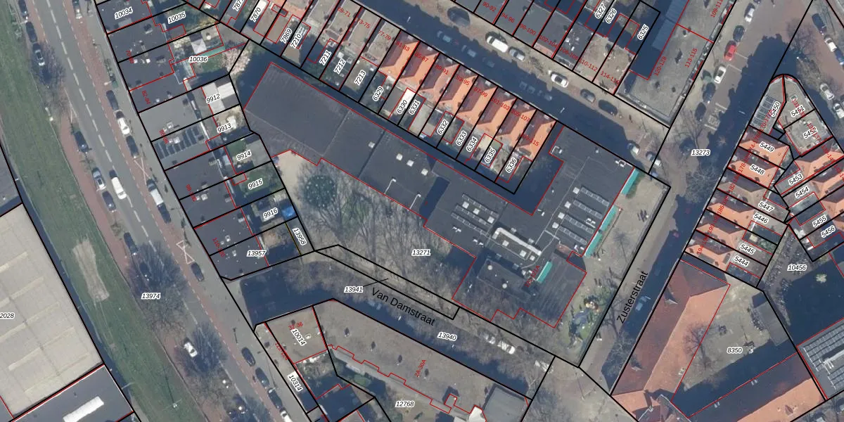 Het perceel waarop Zusterstraat 121 staat heeft een oppervlakte van 3530 m². Dit is een zeer groot perceel. De perceeloppervlakte wordt geregistreerd door het Kadaster. Gedetailleerde informatie over de maten van dit perceel kunt u vinden in het rapport Kadastrale kaart met maatvoering van Zusterstraat 121.