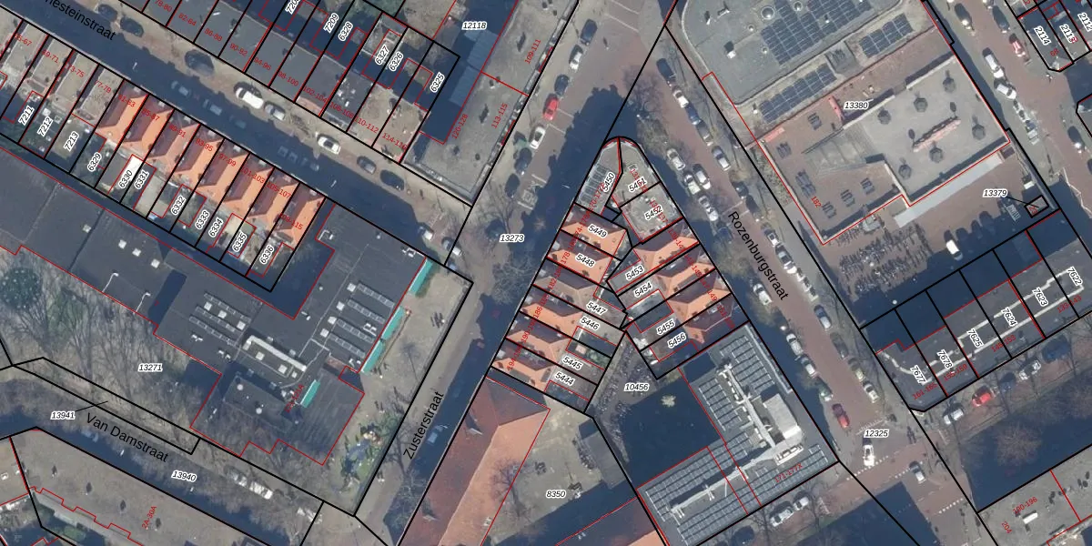 Het perceel waarop Zusterstraat 182 staat heeft een oppervlakte van 95 m². Dit is een klein perceel. De perceeloppervlakte wordt geregistreerd door het Kadaster. Gedetailleerde informatie over de maten van dit perceel kunt u vinden in het rapport Kadastrale kaart met maatvoering van Zusterstraat 182.