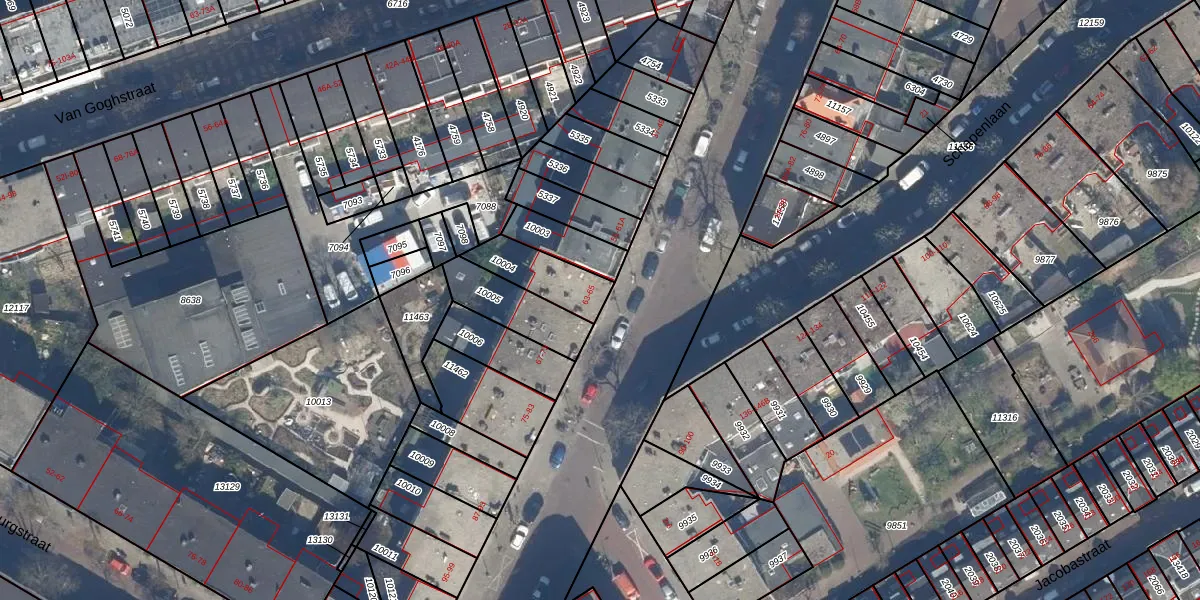 Het perceel waarop het adres ligt is GVH08-L-10004. De afkorting 'GVH08' staat voor kadastrale gemeente 's-Gravenhage. De gemiddelde perceelgrootte in 's-Gravenhage is 468,2 m². Dit perceel is kleiner: de perceeloppervlakte bedraagt 158 m². De grootste perceeloppervlakte in de kadastrale gemeente is 3,8 ha. De kleinste oppervlakte bedraagt 0 m². Er zijn 3 adressen aanwezig op het perceel. De huidige grenzen van het perceel zijn digitaal in de Basisregistratie Kadaster (BRK) geregistreerd op 08-10-2007.