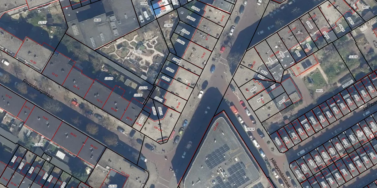 Het perceel waarop het adres ligt is GVH08-L-10010. De afkorting 'GVH08' staat voor kadastrale gemeente 's-Gravenhage. Het perceel is kleiner dan gemiddeld in 's-Gravenhage. Het perceel is 147 m² groot, terwijl het gemiddelde ligt op 468,2 m². Het grootste perceel in de kadastrale gemeente is 3,8 ha. Het kleinste perceel heeft een oppervlakte van 0 m². Op het perceel zijn 3 adressen aanwezig. De huidige grenzen van het perceel zijn digitaal in de Basisregistratie Kadaster (BRK) geregistreerd op 08-10-2007.