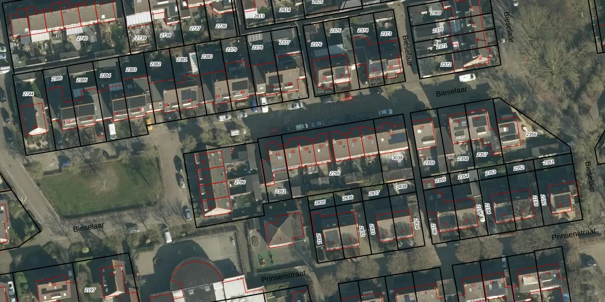 Het perceel waarop Bieselaar 39 staat heeft een oppervlakte van 670 m². Dit is een groot perceel. De perceeloppervlakte wordt geregistreerd door het Kadaster. Gedetailleerde informatie over de maten van dit perceel kunt u vinden in het rapport Kadastrale kaart met maatvoering van Bieselaar 39.