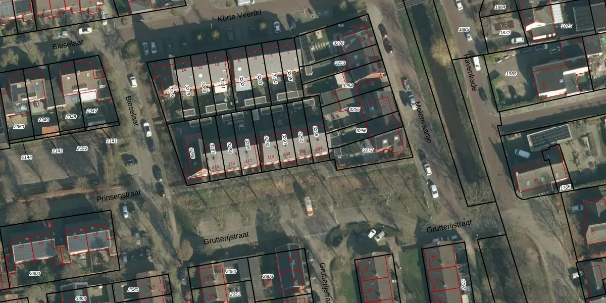 Het perceel waarop Grutterijstraat 106 staat heeft een oppervlakte van 114 m². Dit is een middelgroot perceel. De perceeloppervlakte wordt geregistreerd door het Kadaster. Gedetailleerde informatie over de maten van dit perceel kunt u vinden in het rapport Kadastrale kaart met maatvoering van Grutterijstraat 106.
