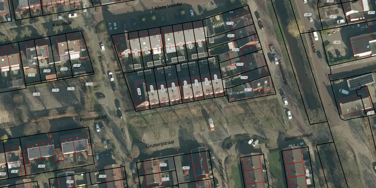Grutterijstraat 110 is gelegen op kadastraal perceel GVM00B3290. Deze kadastrale aanduiding is uniek en wordt gebruikt door het Kadaster om eigendomsrechten en andere zakelijke rechten vast te leggen. Het perceel maakt onderdeel uit van de kadastrale gemeente 's-Gravenmoer.
