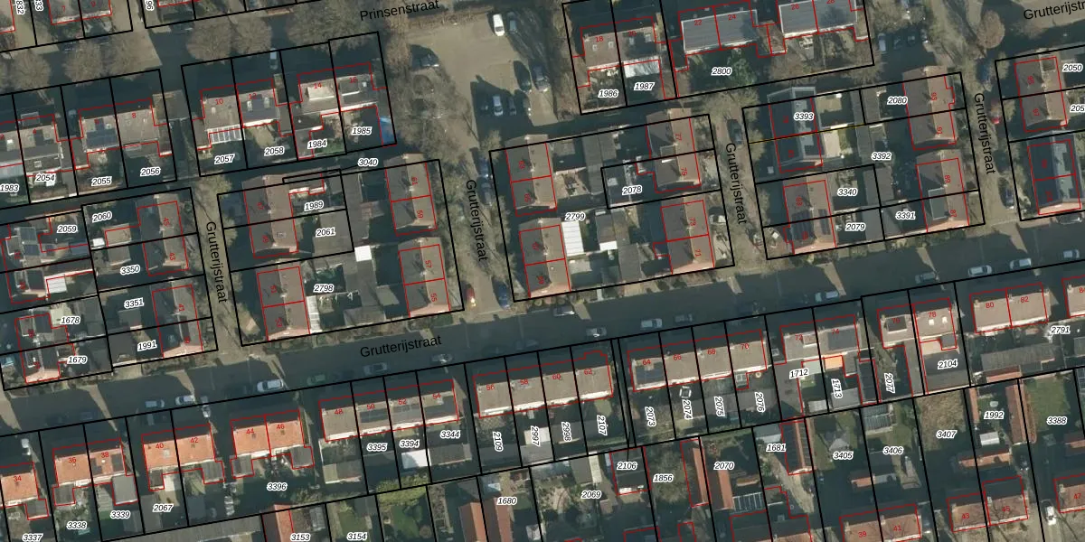 Het perceel waarop Grutterijstraat 69 staat heeft een oppervlakte van 1010 m². Dit is een zeer groot perceel. De perceeloppervlakte wordt geregistreerd door het Kadaster. Gedetailleerde informatie over de maten van dit perceel kunt u vinden in het rapport Kadastrale kaart met maatvoering van Grutterijstraat 69.