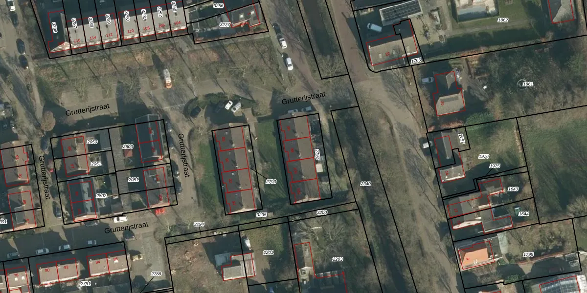 Het perceel waarop Grutterijstraat 98 staat heeft een oppervlakte van 418 m². Dit is een groot perceel. De perceeloppervlakte wordt geregistreerd door het Kadaster. Gedetailleerde informatie over de maten van dit perceel kunt u vinden in het rapport Kadastrale kaart met maatvoering van Grutterijstraat 98.