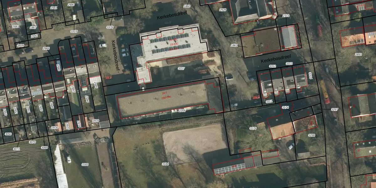 Kerkebosdreef 23-J is gelegen op kadastraal perceel GVM00B2205. Deze kadastrale aanduiding is uniek en wordt gebruikt door het Kadaster om eigendomsrechten en andere zakelijke rechten vast te leggen. Het perceel maakt onderdeel uit van de kadastrale gemeente 's-Gravenmoer.
