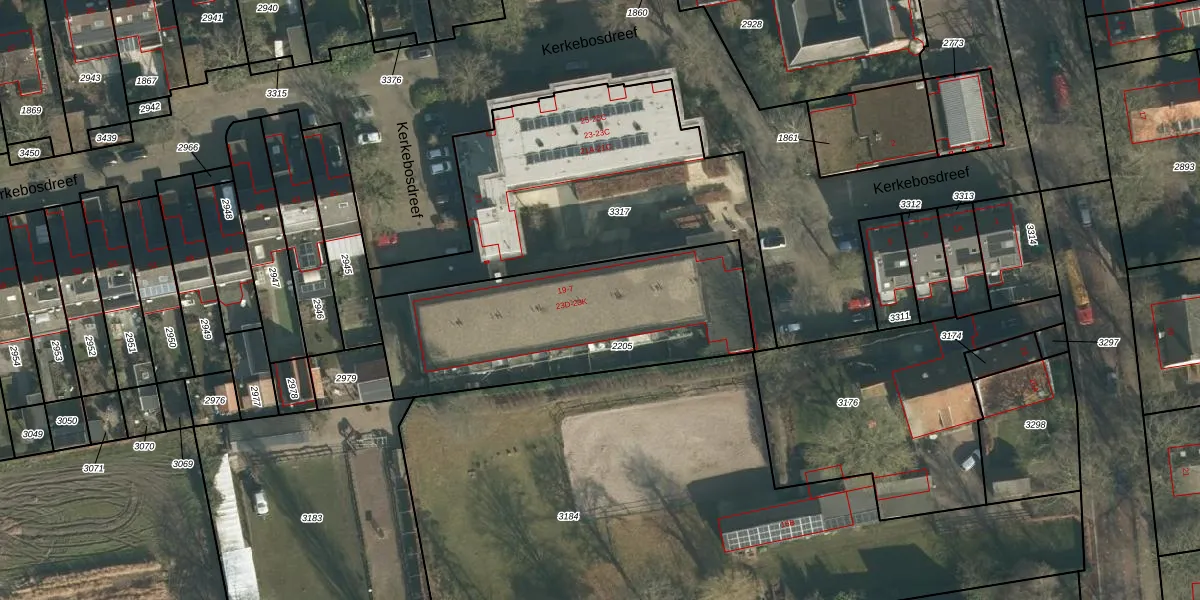 Kerkebosdreef 23-H is gelegen op kadastraal perceel GVM00B2205. Deze kadastrale aanduiding is uniek en wordt gebruikt door het Kadaster om eigendomsrechten en andere zakelijke rechten vast te leggen. Het perceel maakt onderdeel uit van de kadastrale gemeente 's-Gravenmoer.