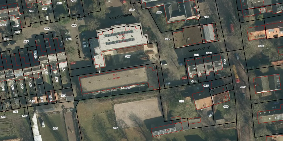 Kerkebosdreef 7 is gelegen op kadastraal perceel GVM00B2205. Deze kadastrale aanduiding is uniek en wordt gebruikt door het Kadaster om eigendomsrechten en andere zakelijke rechten vast te leggen. Het perceel maakt onderdeel uit van de kadastrale gemeente 's-Gravenmoer.