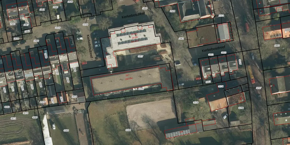 Kerkebosdreef 9 is gelegen op kadastraal perceel GVM00B2205. Deze kadastrale aanduiding is uniek en wordt gebruikt door het Kadaster om eigendomsrechten en andere zakelijke rechten vast te leggen. Het perceel maakt onderdeel uit van de kadastrale gemeente 's-Gravenmoer.