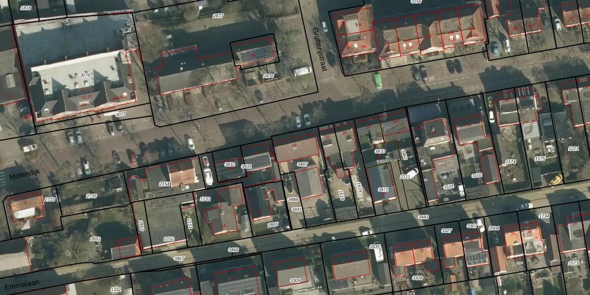 Molendijk 14 is gelegen op kadastraal perceel GVM00B3487. Deze kadastrale aanduiding is uniek en wordt gebruikt door het Kadaster om eigendomsrechten en andere zakelijke rechten vast te leggen. Het perceel maakt onderdeel uit van de kadastrale gemeente 's-Gravenmoer.
