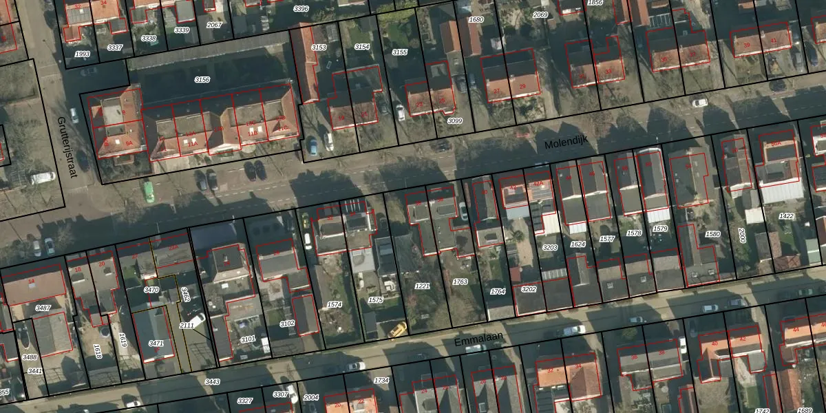 Het perceel waarop Molendijk 36 staat heeft een oppervlakte van 365 m². Dit is een groot perceel. De perceeloppervlakte wordt geregistreerd door het Kadaster. Gedetailleerde informatie over de maten van dit perceel kunt u vinden in het rapport Kadastrale kaart met maatvoering van Molendijk 36.