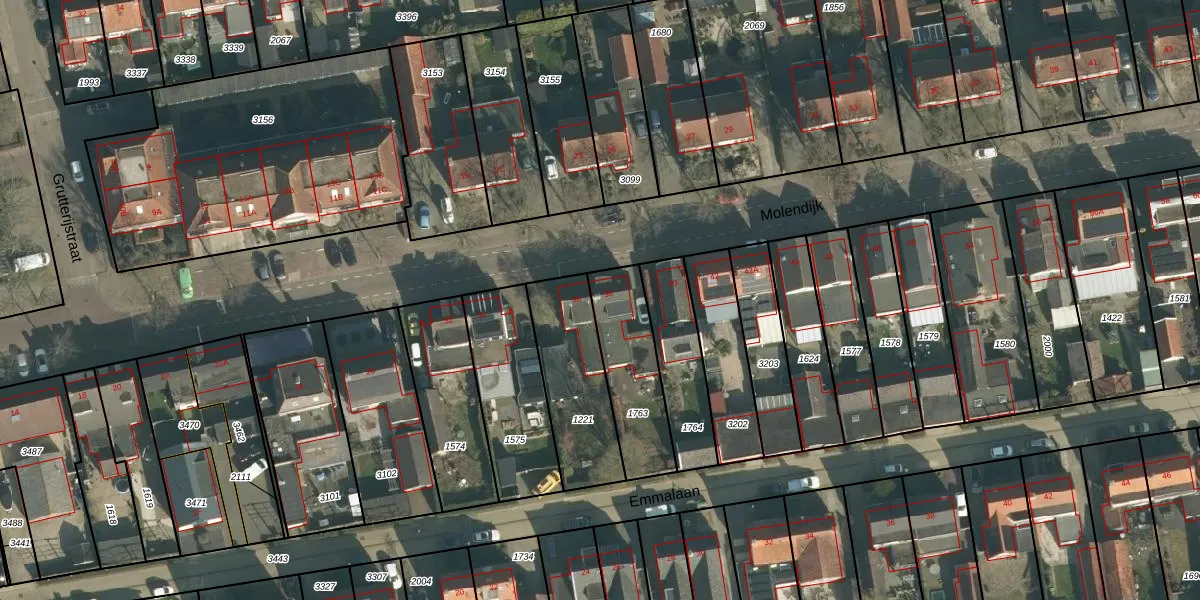 Het perceel waarop Molendijk 38 staat heeft een oppervlakte van 305 m². Dit is een groot perceel. De perceeloppervlakte wordt geregistreerd door het Kadaster. Gedetailleerde informatie over de maten van dit perceel kunt u vinden in het rapport Kadastrale kaart met maatvoering van Molendijk 38.