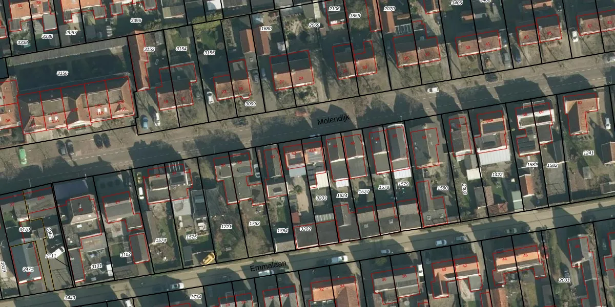 Molendijk 42-A is gelegen op kadastraal perceel GVM00B3203. Deze kadastrale aanduiding is uniek en wordt gebruikt door het Kadaster om eigendomsrechten en andere zakelijke rechten vast te leggen. Het perceel maakt onderdeel uit van de kadastrale gemeente 's-Gravenmoer.