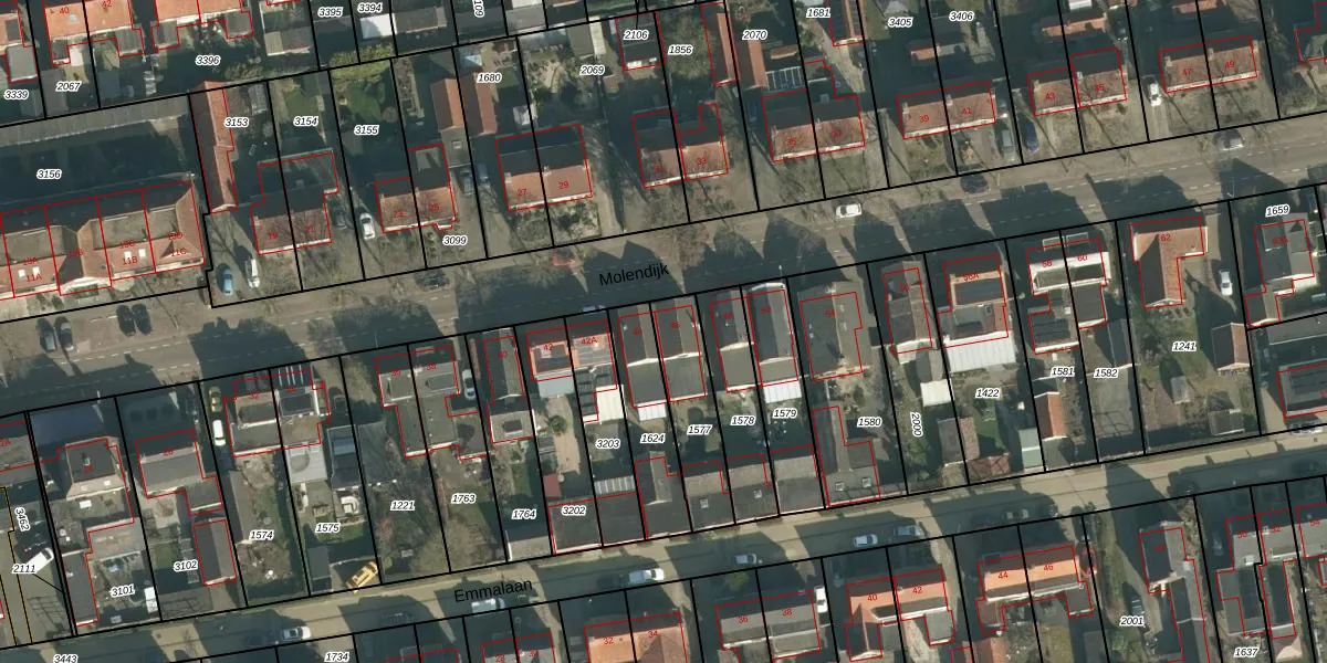 Het perceel waarop Molendijk 46 staat heeft een oppervlakte van 245 m². Dit is een middelgroot perceel. De perceeloppervlakte wordt geregistreerd door het Kadaster. Gedetailleerde informatie over de maten van dit perceel kunt u vinden in het rapport Kadastrale kaart met maatvoering van Molendijk 46.