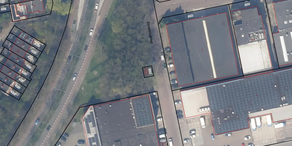 Het perceel waarop Einsteinstraat 2 staat heeft een oppervlakte van 46 m². Dit is een klein perceel. De perceeloppervlakte wordt geregistreerd door het Kadaster. Gedetailleerde informatie over de maten van dit perceel kunt u vinden in het rapport Kadastrale kaart met maatvoering van Einsteinstraat 2.