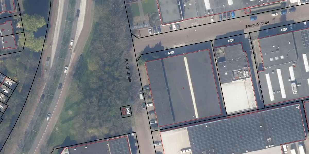 Het perceel waarop Einsteinstraat 3 staat heeft een oppervlakte van 2500 m². Dit is een zeer groot perceel. De perceeloppervlakte wordt geregistreerd door het Kadaster. Gedetailleerde informatie over de maten van dit perceel kunt u vinden in het rapport Kadastrale kaart met maatvoering van Einsteinstraat 3.