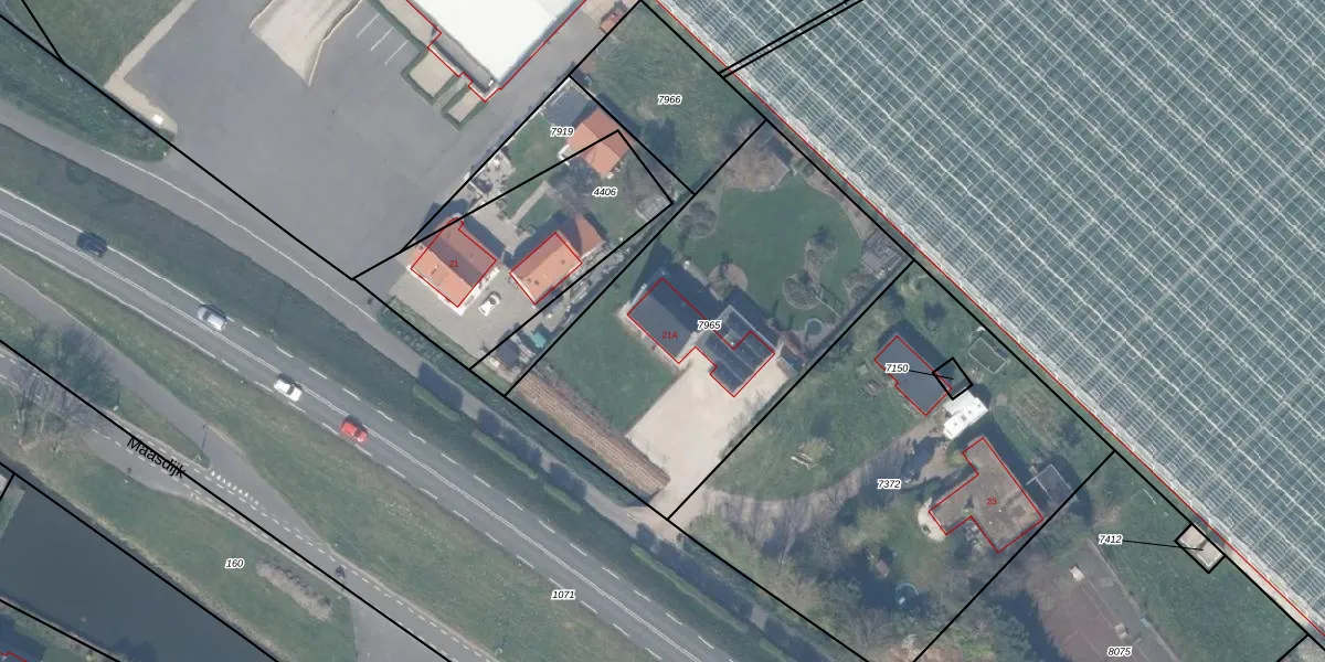 Het perceel waarop Maasdijk 21-A staat heeft een oppervlakte van 1730 m². Dit is een zeer groot perceel. De perceeloppervlakte wordt geregistreerd door het Kadaster. Gedetailleerde informatie over de maten van dit perceel kunt u vinden in het rapport Kadastrale kaart met maatvoering van Maasdijk 21-A.