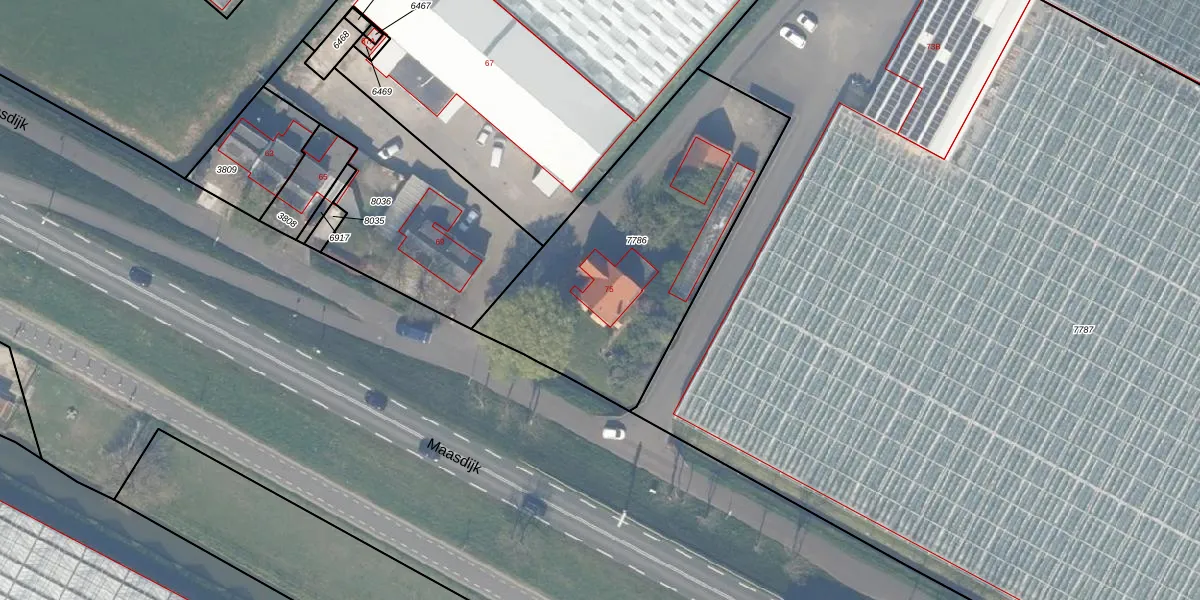 Maasdijk 75 is gelegen op kadastraal perceel GVZ00L7786. Deze kadastrale aanduiding is uniek en wordt gebruikt door het Kadaster om eigendomsrechten en andere zakelijke rechten vast te leggen. Het perceel maakt onderdeel uit van de kadastrale gemeente 's-Gravenzande.