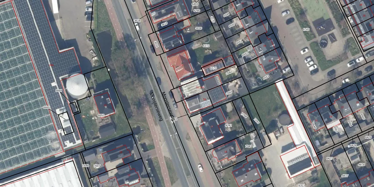 Monsterseweg 21 is gelegen op kadastraal perceel GVZ00I2542. Deze kadastrale aanduiding is uniek en wordt gebruikt door het Kadaster om eigendomsrechten en andere zakelijke rechten vast te leggen. Het perceel maakt onderdeel uit van de kadastrale gemeente 's-Gravenzande.