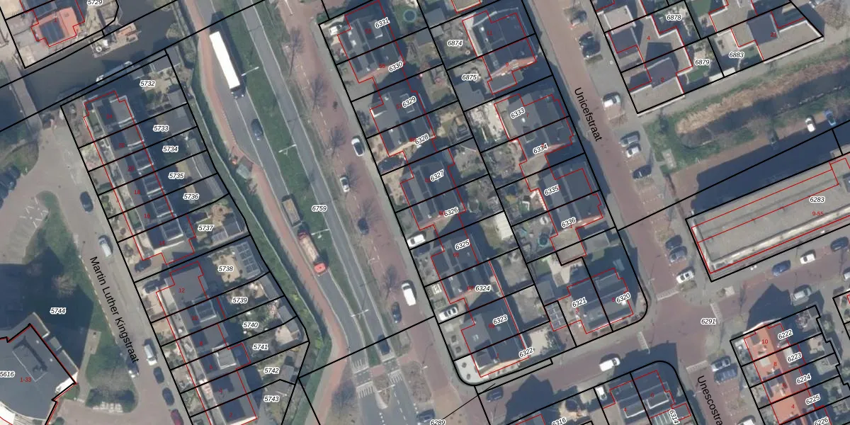 Gebruik de zoekbalk of klik op een perceel voor informatie over de adressen binnen dit perceel.
