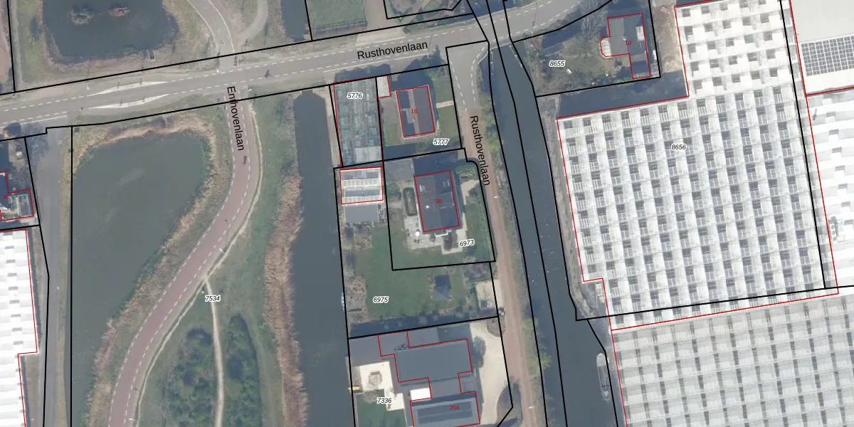 Rusthovenlaan 20 is gelegen op kadastraal perceel GVZ00I6973. Deze kadastrale aanduiding is uniek en wordt gebruikt door het Kadaster om eigendomsrechten en andere zakelijke rechten vast te leggen. Het perceel maakt onderdeel uit van de kadastrale gemeente 's-Gravenzande.