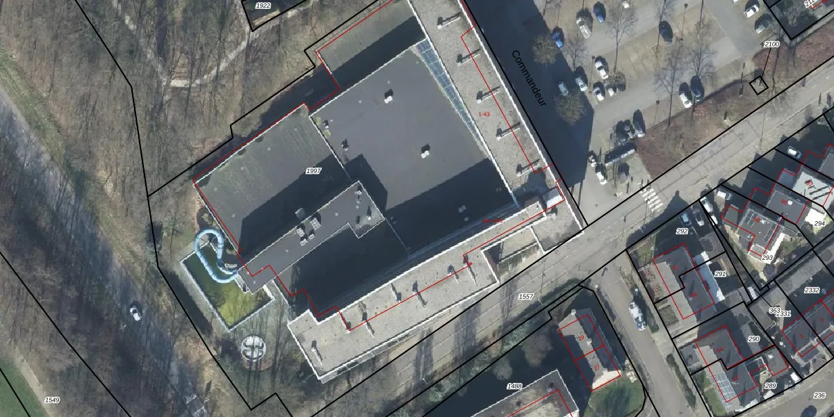Het perceel waarop Commandeur 21 staat heeft een oppervlakte van 6510 m². Dit is een zeer groot perceel. De perceeloppervlakte wordt geregistreerd door het Kadaster. Gedetailleerde informatie over de maten van dit perceel kunt u vinden in het rapport Kadastrale kaart met maatvoering van Commandeur 21.