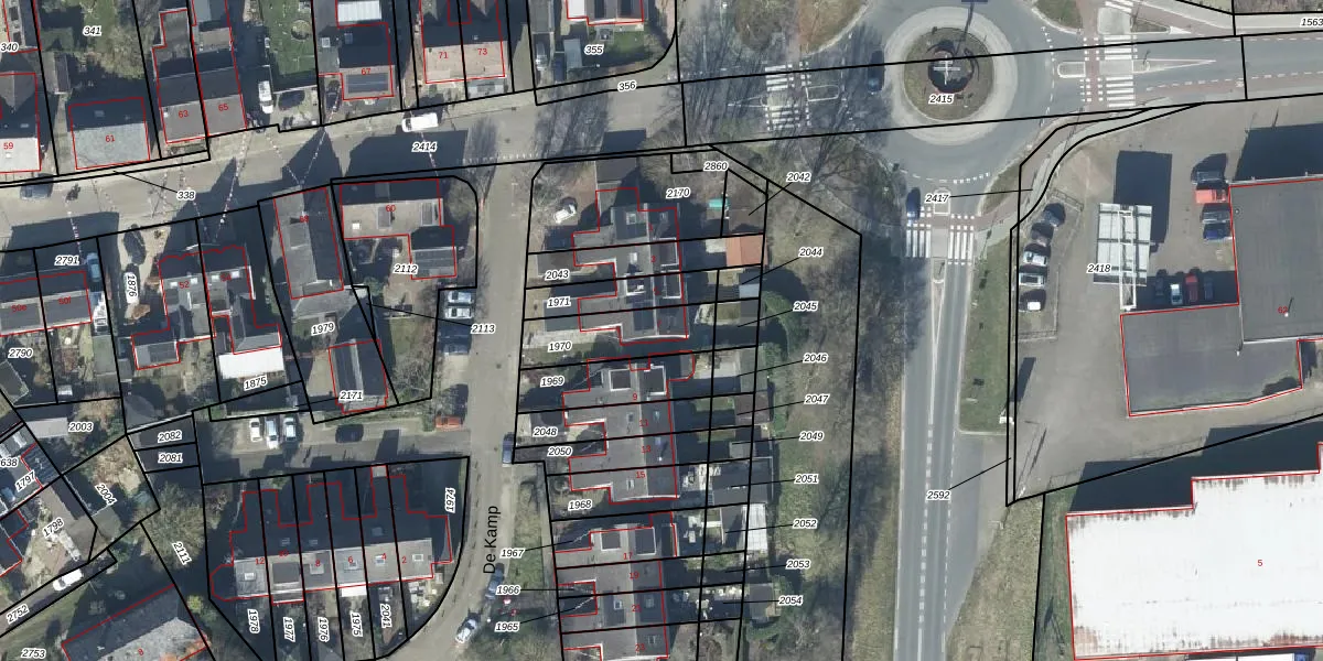 Het perceel waarop De Kamp 7 staat heeft een oppervlakte van 210 m². Dit is een middelgroot perceel. De perceeloppervlakte wordt geregistreerd door het Kadaster. Gedetailleerde informatie over de maten van dit perceel kunt u vinden in het rapport Kadastrale kaart met maatvoering van De Kamp 7.