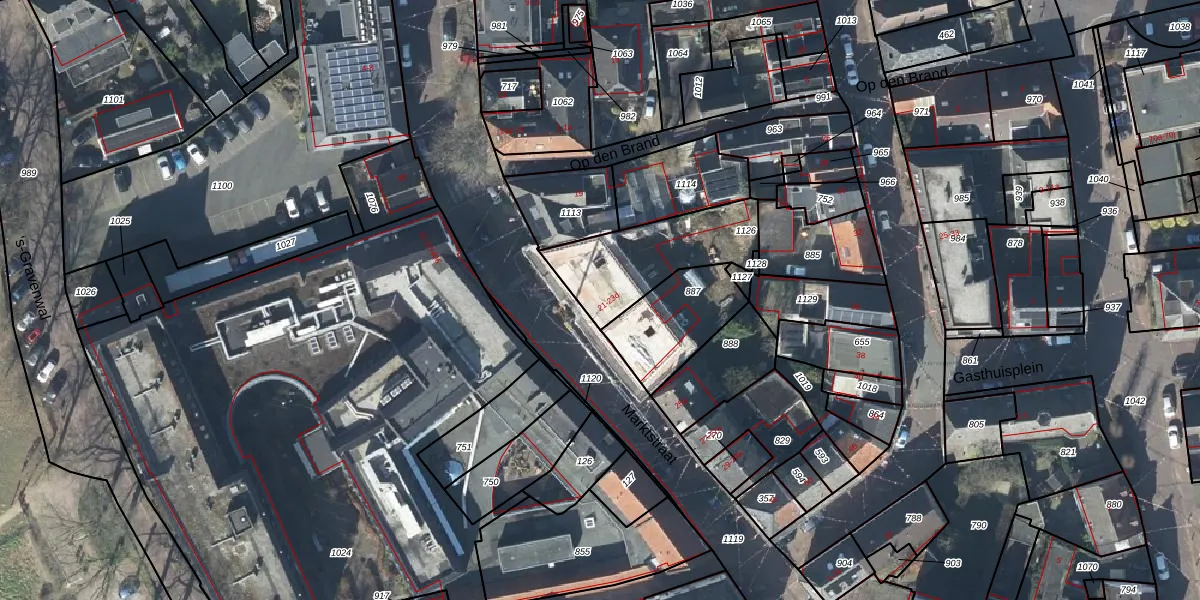 Het perceel waarop Marktstraat 21-c staat heeft een oppervlakte van 353 m². Dit is een groot perceel. De perceeloppervlakte wordt geregistreerd door het Kadaster. Gedetailleerde informatie over de maten van dit perceel kunt u vinden in het rapport Kadastrale kaart met maatvoering van Marktstraat 21-c.