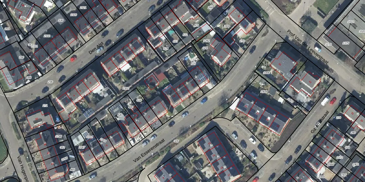 Het perceel waarop Van Esserenstraat 21 staat heeft een oppervlakte van 2656 m². Dit is een zeer groot perceel. De perceeloppervlakte wordt geregistreerd door het Kadaster. Gedetailleerde informatie over de maten van dit perceel kunt u vinden in het rapport Kadastrale kaart met maatvoering van Van Esserenstraat 21.
