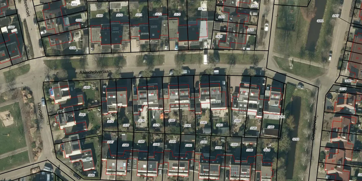 Het perceel waarop Aalscholverlaan 53 staat heeft een oppervlakte van 278 m². Dit is een middelgroot perceel. De perceeloppervlakte wordt geregistreerd door het Kadaster. Gedetailleerde informatie over de maten van dit perceel kunt u vinden in het rapport Kadastrale kaart met maatvoering van Aalscholverlaan 53.