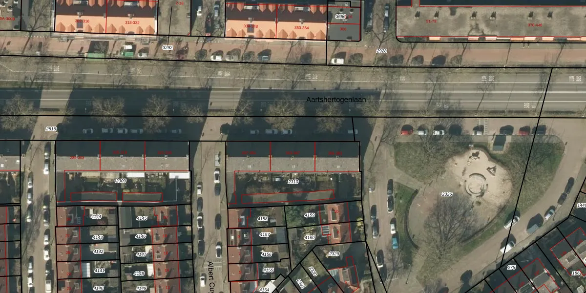 Aartshertogenlaan 355 is gelegen op kadastraal perceel HTG00C2310. Deze kadastrale aanduiding is uniek en wordt gebruikt door het Kadaster om eigendomsrechten en andere zakelijke rechten vast te leggen. Het perceel maakt onderdeel uit van de kadastrale gemeente 's-Hertogenbosch.