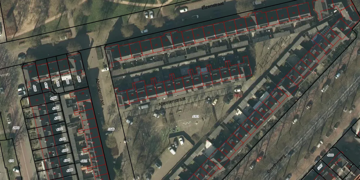 Het perceel waarop Abeelenstraat 15 staat heeft een oppervlakte van 1,0 ha. Dit is een zeer groot perceel. De perceeloppervlakte wordt geregistreerd door het Kadaster. Gedetailleerde informatie over de maten van dit perceel kunt u vinden in het rapport Kadastrale kaart met maatvoering van Abeelenstraat 15.