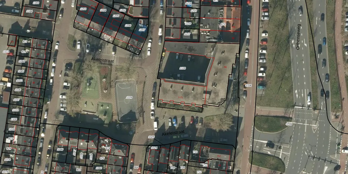 Het perceel waarop Akeleistraat 63 staat heeft een oppervlakte van 1546 m². Dit is een zeer groot perceel. De perceeloppervlakte wordt geregistreerd door het Kadaster. Gedetailleerde informatie over de maten van dit perceel kunt u vinden in het rapport Kadastrale kaart met maatvoering van Akeleistraat 63.