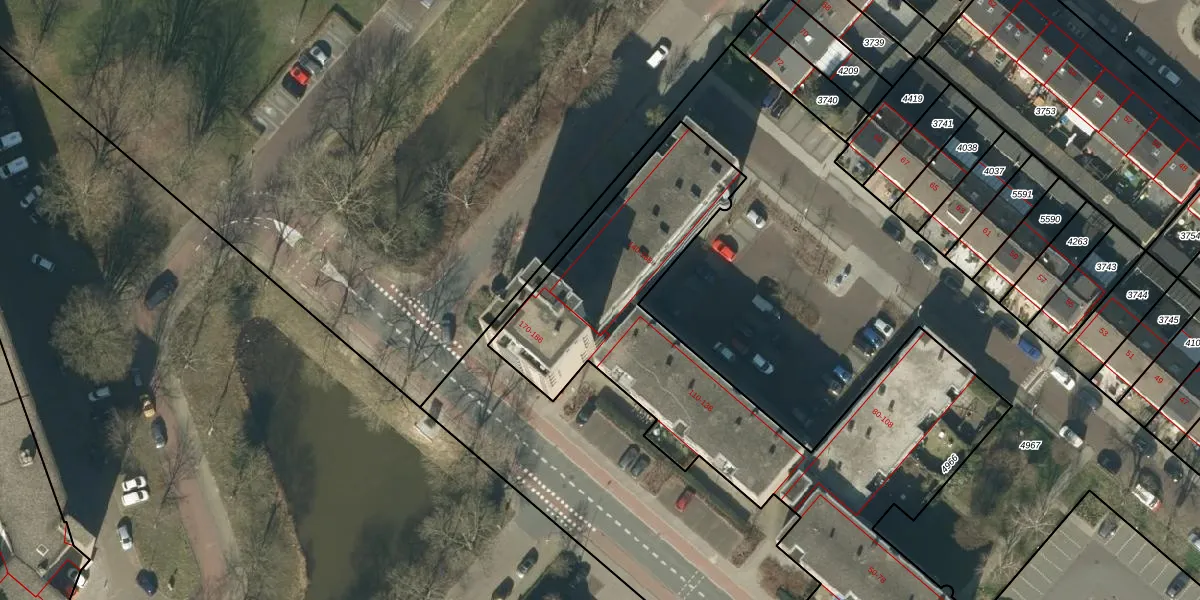 Het perceel waarop Amsterdamstraat 104 staat heeft een oppervlakte van 2383 m². Dit is een zeer groot perceel. De perceeloppervlakte wordt geregistreerd door het Kadaster. Gedetailleerde informatie over de maten van dit perceel kunt u vinden in het rapport Kadastrale kaart met maatvoering van Amsterdamstraat 104.