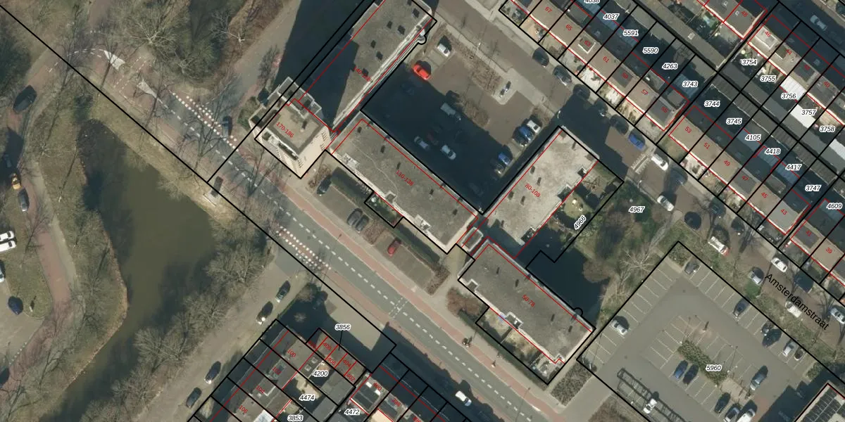 Het perceel waarop Amsterdamstraat 148 staat heeft een oppervlakte van 2383 m². Dit is een zeer groot perceel. De perceeloppervlakte wordt geregistreerd door het Kadaster. Gedetailleerde informatie over de maten van dit perceel kunt u vinden in het rapport Kadastrale kaart met maatvoering van Amsterdamstraat 148.