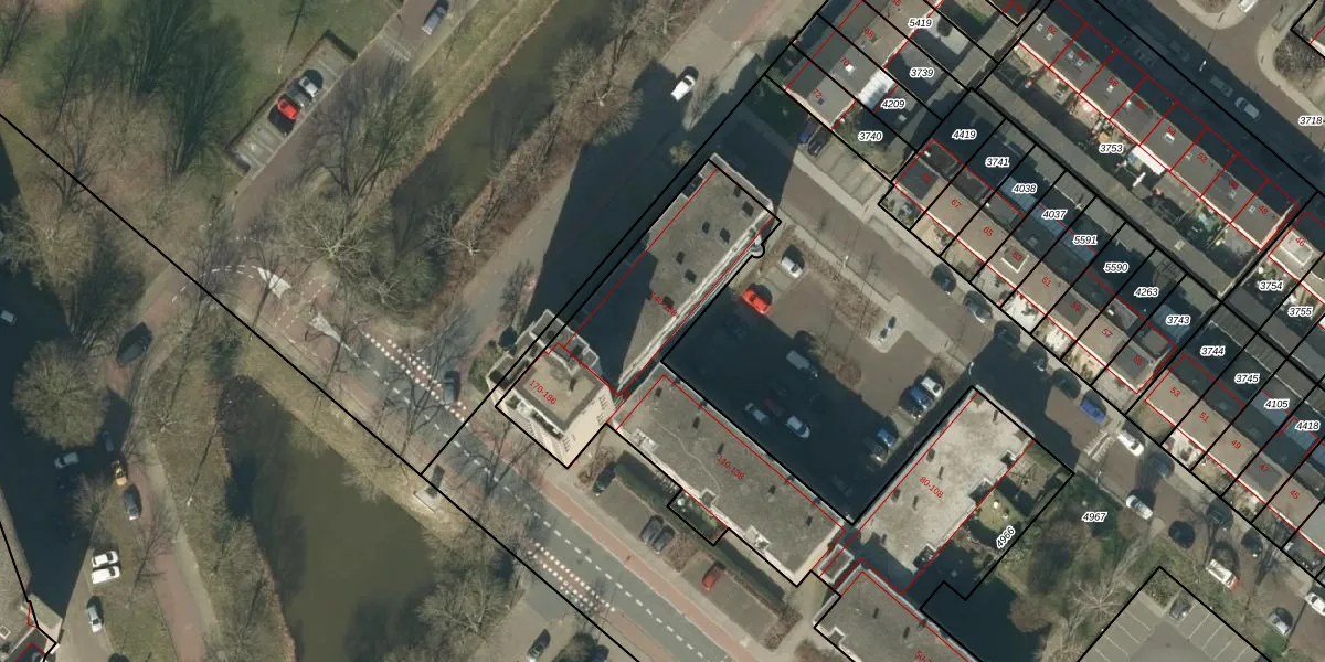 Het perceel waarop Amsterdamstraat 66 staat heeft een oppervlakte van 2383 m². Dit is een zeer groot perceel. De perceeloppervlakte wordt geregistreerd door het Kadaster. Gedetailleerde informatie over de maten van dit perceel kunt u vinden in het rapport Kadastrale kaart met maatvoering van Amsterdamstraat 66.