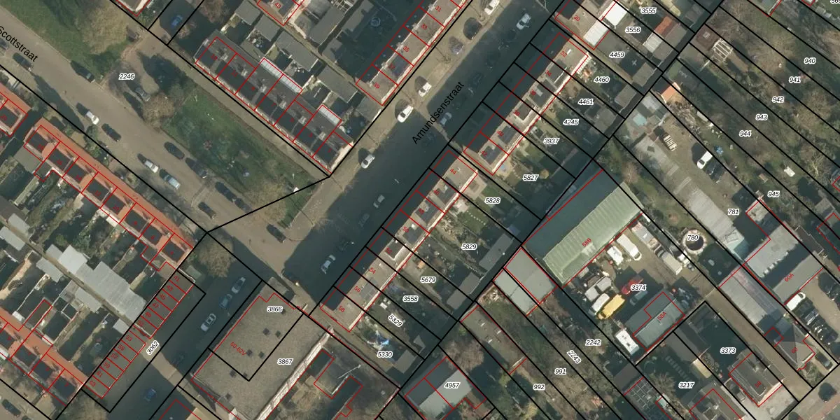 Het perceel waarop Amundsenstraat 48 staat heeft een oppervlakte van 518 m². Dit is een groot perceel. De perceeloppervlakte wordt geregistreerd door het Kadaster. Gedetailleerde informatie over de maten van dit perceel kunt u vinden in het rapport Kadastrale kaart met maatvoering van Amundsenstraat 48.