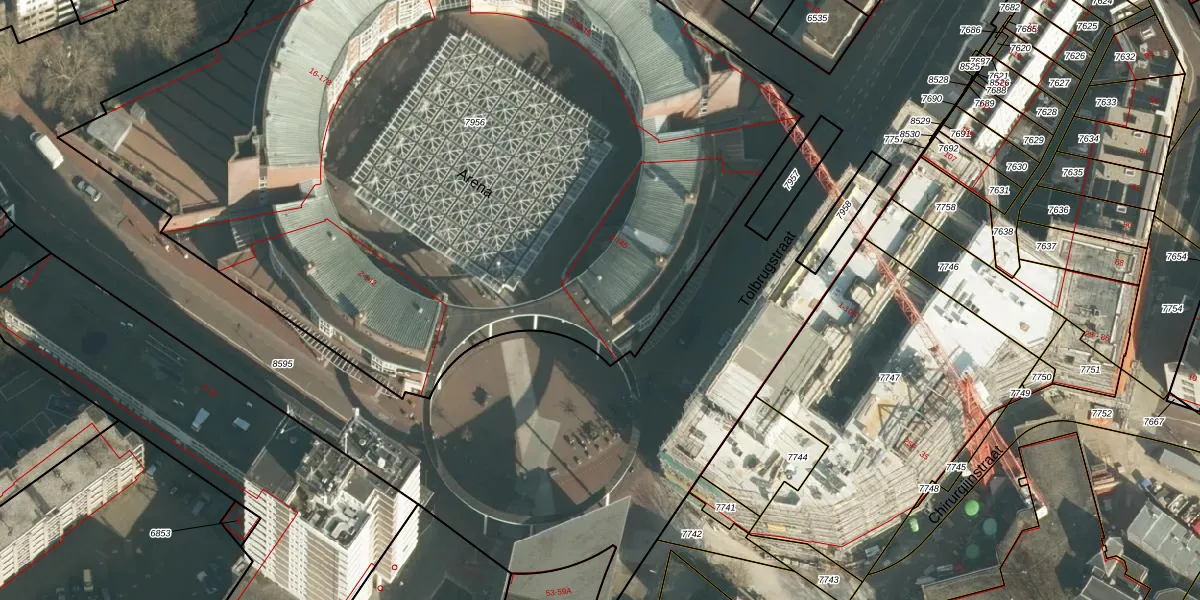 Het perceel waarop Arena 131 staat heeft een oppervlakte van 6302 m². Dit is een zeer groot perceel. De perceeloppervlakte wordt geregistreerd door het Kadaster. Gedetailleerde informatie over de maten van dit perceel kunt u vinden in het rapport Kadastrale kaart met maatvoering van Arena 131.