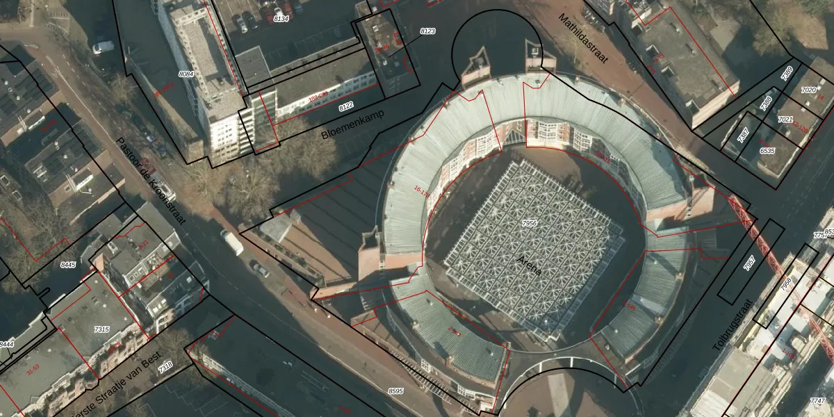 Het perceel waarop Arena 134 staat heeft een oppervlakte van 6302 m². Dit is een zeer groot perceel. De perceeloppervlakte wordt geregistreerd door het Kadaster. Gedetailleerde informatie over de maten van dit perceel kunt u vinden in het rapport Kadastrale kaart met maatvoering van Arena 134.