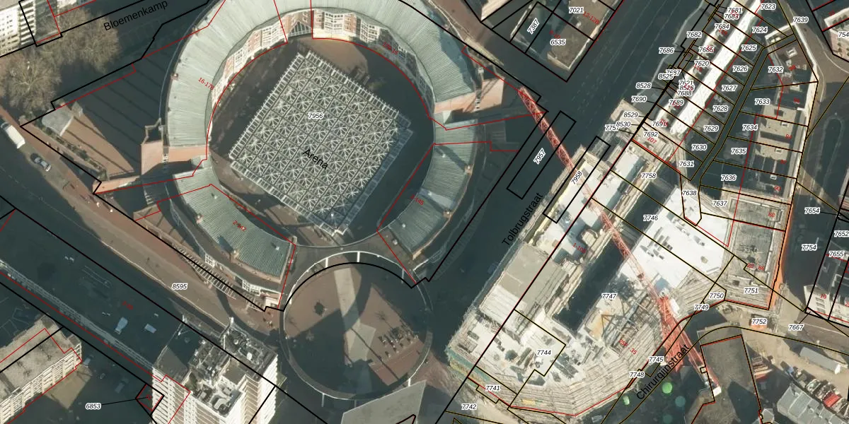 Het perceel waarop Arena 143 staat heeft een oppervlakte van 6302 m². Dit is een zeer groot perceel. De perceeloppervlakte wordt geregistreerd door het Kadaster. Gedetailleerde informatie over de maten van dit perceel kunt u vinden in het rapport Kadastrale kaart met maatvoering van Arena 143.