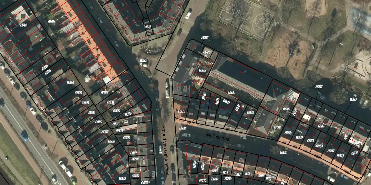 Het perceel waarop Arnoud van Gelderstraat 13-C staat heeft een oppervlakte van 418 m². Dit is een groot perceel. De perceeloppervlakte wordt geregistreerd door het Kadaster. Gedetailleerde informatie over de maten van dit perceel kunt u vinden in het rapport Kadastrale kaart met maatvoering van Arnoud van Gelderstraat 13-C.