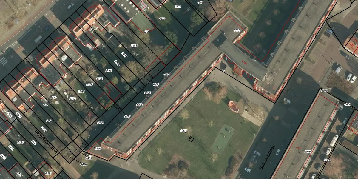 Het perceel waarop Baksvelstraat 36 staat heeft een oppervlakte van 6885 m². Dit is een zeer groot perceel. De perceeloppervlakte wordt geregistreerd door het Kadaster. Gedetailleerde informatie over de maten van dit perceel kunt u vinden in het rapport Kadastrale kaart met maatvoering van Baksvelstraat 36.
