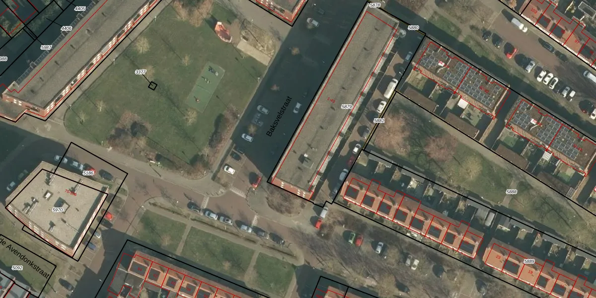 Baksvelstraat 5 is gelegen op kadastraal perceel HTG00K5879. Deze kadastrale aanduiding is uniek en wordt gebruikt door het Kadaster om eigendomsrechten en andere zakelijke rechten vast te leggen. Het perceel maakt onderdeel uit van de kadastrale gemeente 's-Hertogenbosch.