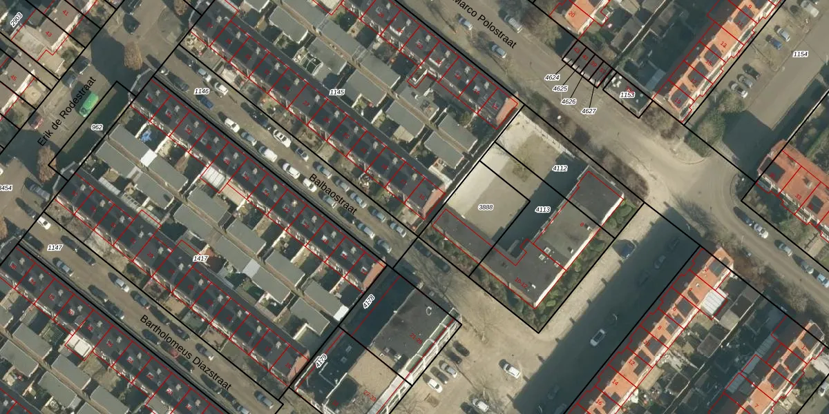 Het perceel waarop Balbaostraat 15 staat heeft een oppervlakte van 3040 m². Dit is een zeer groot perceel. De perceeloppervlakte wordt geregistreerd door het Kadaster. Gedetailleerde informatie over de maten van dit perceel kunt u vinden in het rapport Kadastrale kaart met maatvoering van Balbaostraat 15.