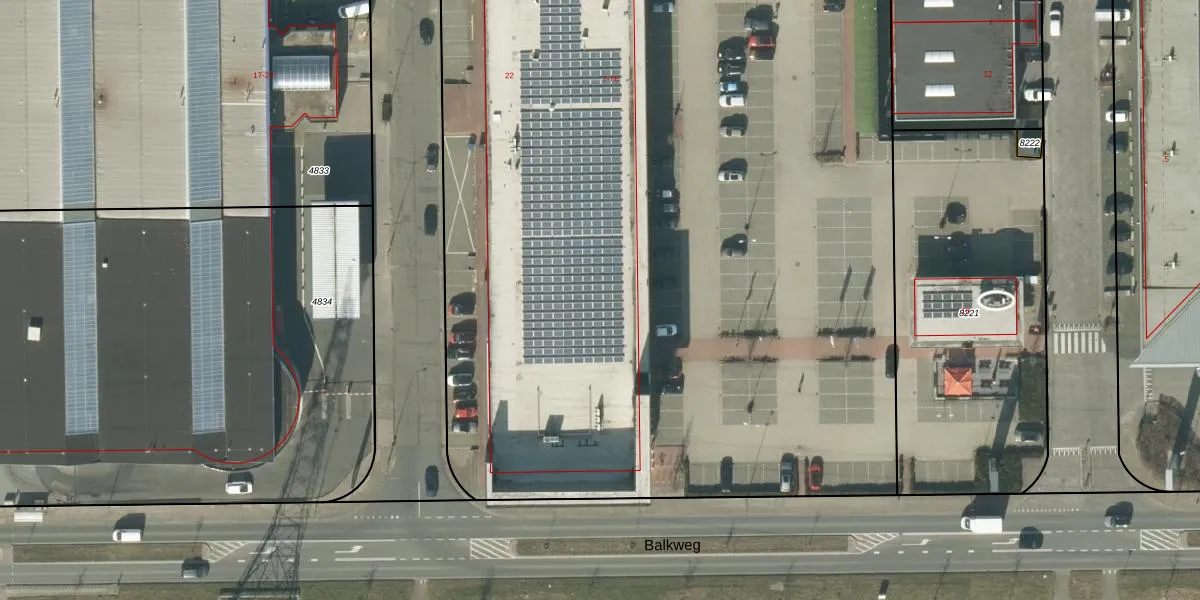 Het perceel waarop Balkweg 7-D staat heeft een oppervlakte van 1,5 ha. Dit is een zeer groot perceel. De perceeloppervlakte wordt geregistreerd door het Kadaster. Gedetailleerde informatie over de maten van dit perceel kunt u vinden in het rapport Kadastrale kaart met maatvoering van Balkweg 7-D.