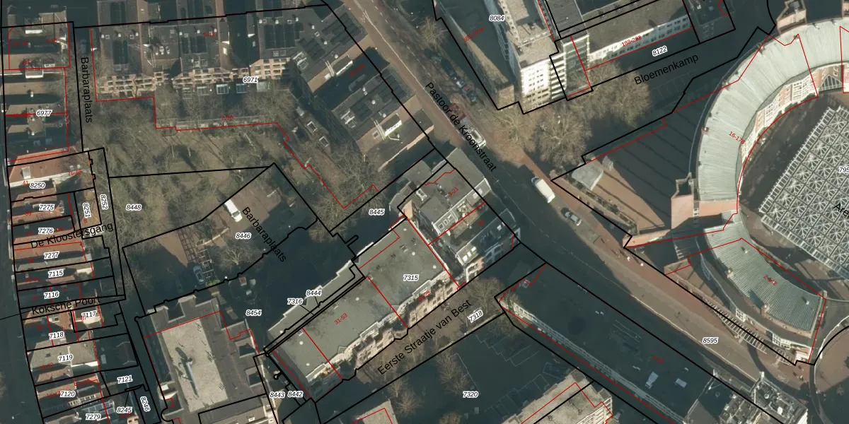 Barbaraplaats 13 is gelegen op kadastraal perceel HTG00G7315. Deze kadastrale aanduiding is uniek en wordt gebruikt door het Kadaster om eigendomsrechten en andere zakelijke rechten vast te leggen. Het perceel maakt onderdeel uit van de kadastrale gemeente 's-Hertogenbosch.
