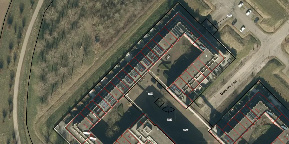 Het perceel waarop Beeckendael 15 staat heeft een oppervlakte van 1,2 ha. Dit is een zeer groot perceel. De perceeloppervlakte wordt geregistreerd door het Kadaster. Gedetailleerde informatie over de maten van dit perceel kunt u vinden in het rapport Kadastrale kaart met maatvoering van Beeckendael 15.