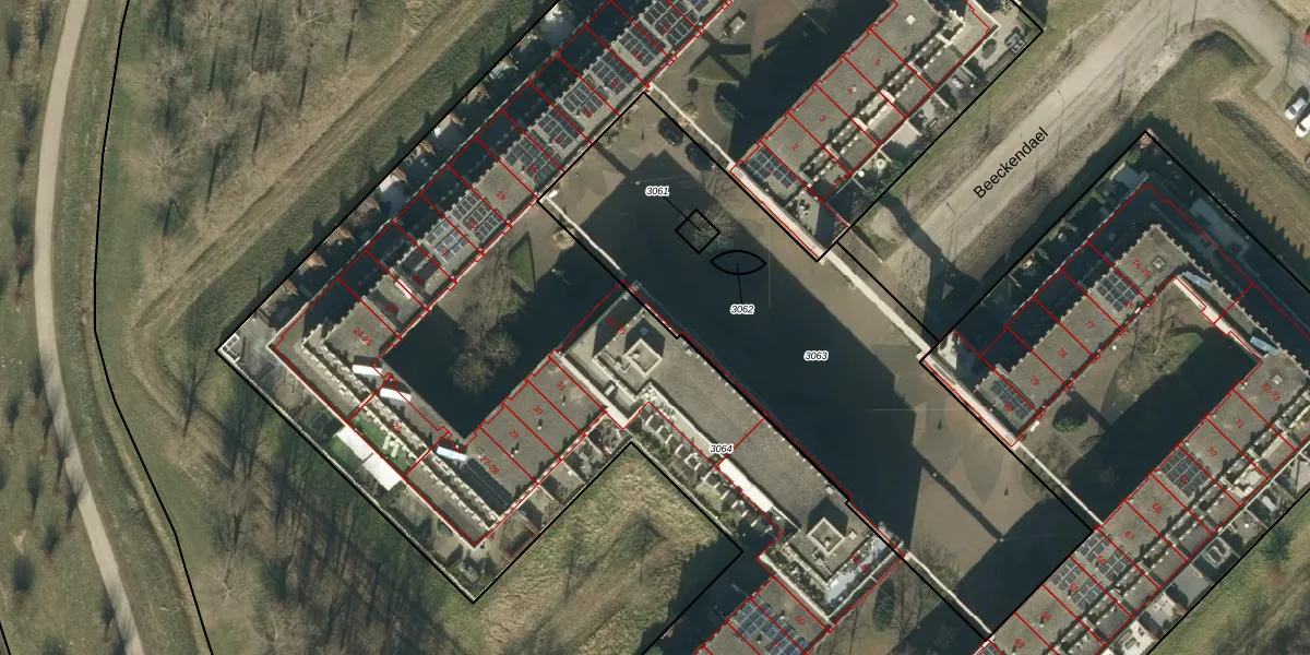 Het perceel waarop Beeckendael 33 staat heeft een oppervlakte van 1,2 ha. Dit is een zeer groot perceel. De perceeloppervlakte wordt geregistreerd door het Kadaster. Gedetailleerde informatie over de maten van dit perceel kunt u vinden in het rapport Kadastrale kaart met maatvoering van Beeckendael 33.
